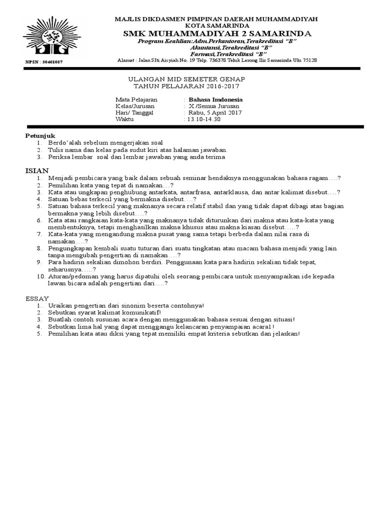 Contoh soal essay bahasa indonesia kelas 7 semester 1. Contoh soal bahasa indonesia kelas xi semester 1 beserta jawabannya dalam tulisan ini, berbentuk essay/uraian, yang berisikan materi tentang . Kebatulan soal ini sudah kakak susun sebanyak 15 buah soal beserta dengan kunci jawaban yang akan mempermudah adik adik dalam mengerjakannya. Antara naskah soal dengan jawaban terletak . Doc contoh soal uas bahasa .